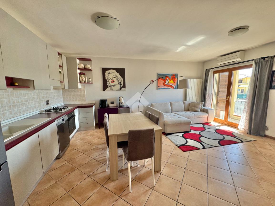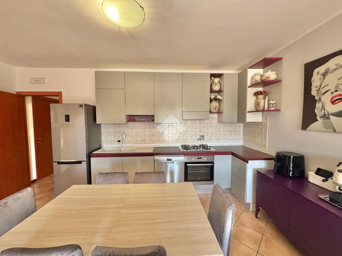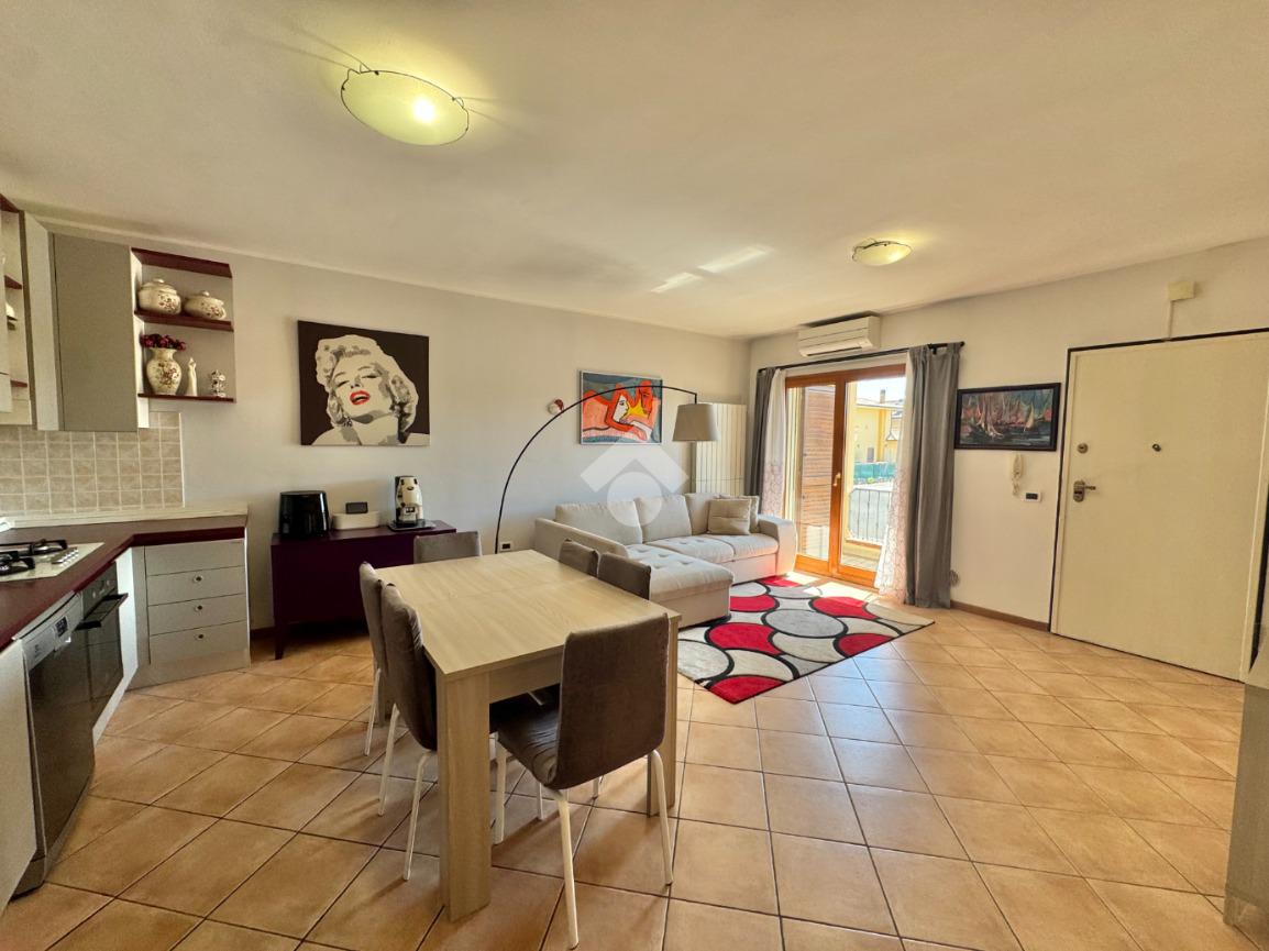 Composizione: soggiorno con angolo cottura, camera matrimoniale, camera doppia, bagno ventilato e due balconi.