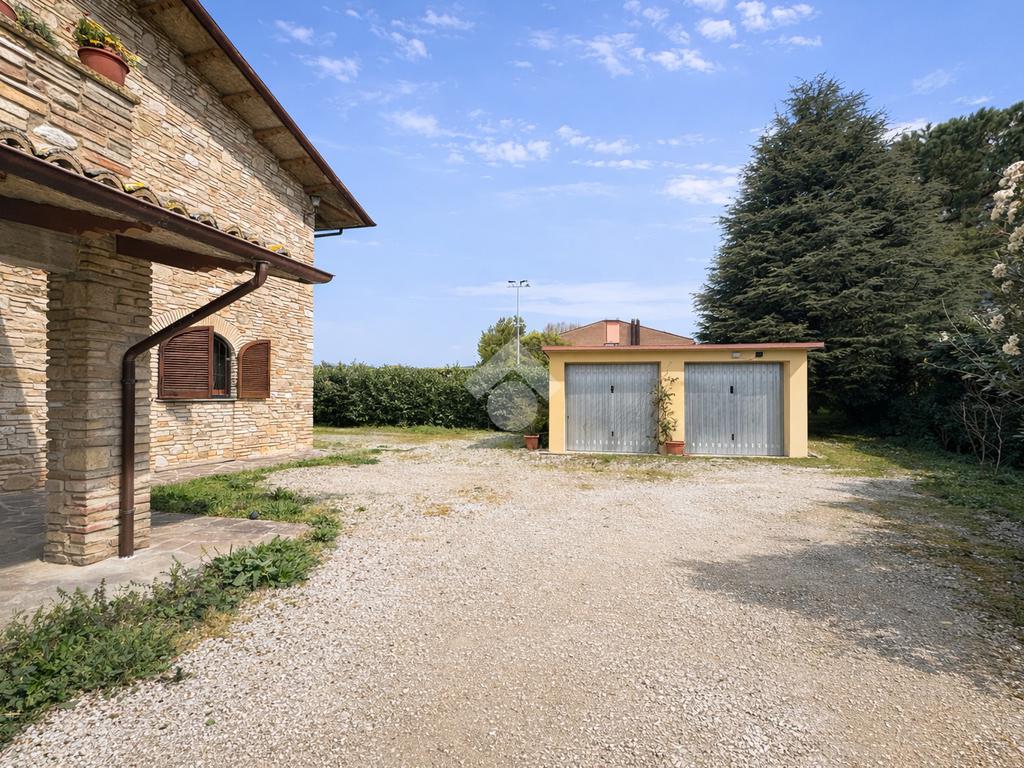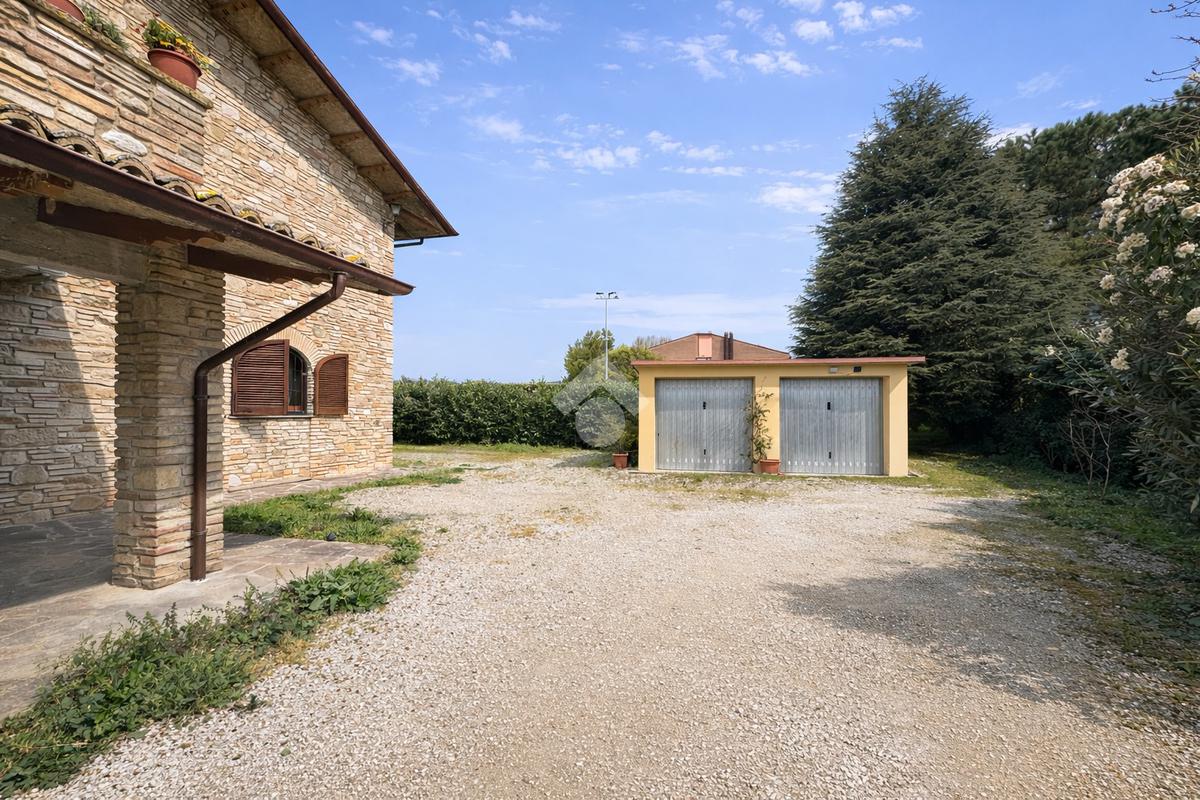 Completano la proprietà un box auto fuori terra di 32 mq e giardino ad uso comune di 2.500 mq.